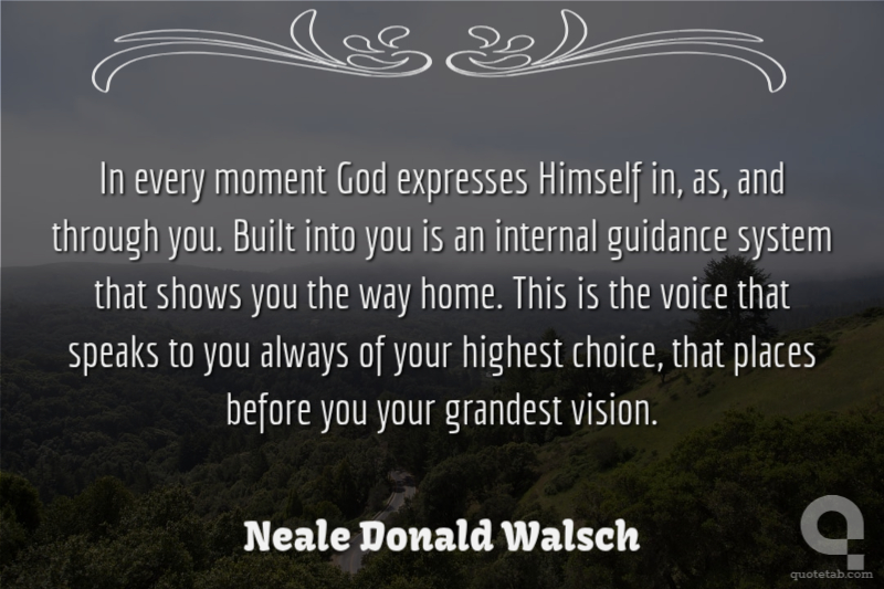 In every moment God expresses Himself in, as, and through you. Built into you is an internal guidance system that shows you the way home. This is the voice that speaks to you always of your highest choice, that places before you your grandest vision.
