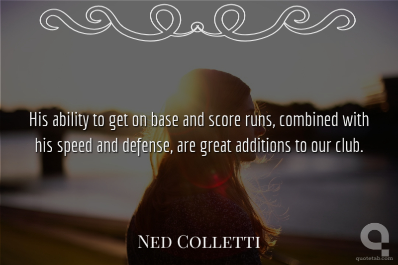 His ability to get on base and score runs, combined with his speed and defense, are great additions to our club.