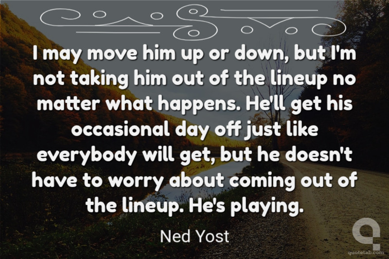 I may move him up or down, but I'm not taking him out of the lineup no matter what happens. He'll get his occasional day off just like everybody will get, but he doesn't have to worry about coming out of the lineup. He's playing.