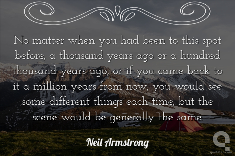 No matter when you had been to this spot before, a thousand years ago or a hundred thousand years ago, or if you came back to it a million years from now, you would see some different things each time, but the scene would be generally the same.