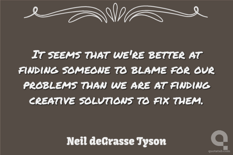 It seems that we're better at finding someone to blame for our problems than we are at finding creative solutions to fix them.
