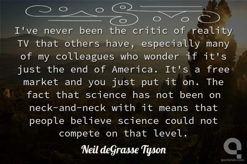 I've never been the critic of reality TV that others have, especially many of my colleagues who wonder if it's just the end of America. It's a free market and you just put it on. The fact that science has not been on neck-and-neck with it means that people believe science could not compete on that level.