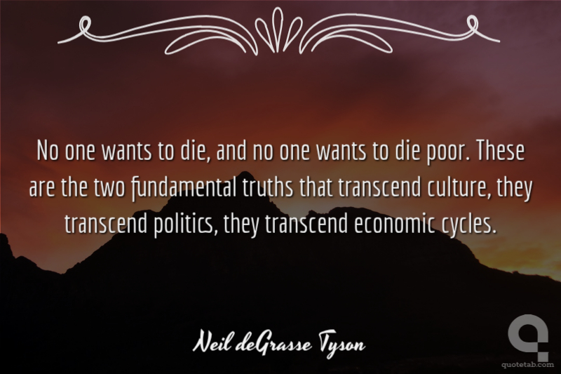 No one wants to die, and no one wants to die poor. These are the two fundamental truths that transcend culture, they transcend politics, they transcend economic cycles.
