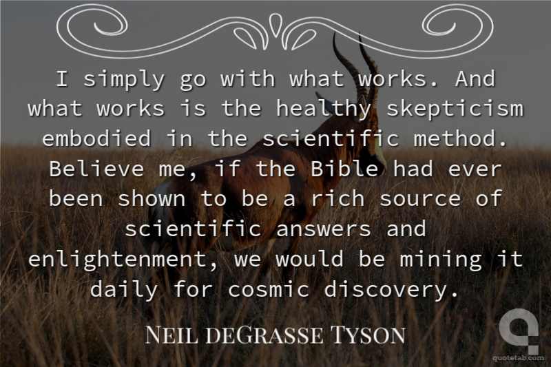 I simply go with what works. And what works is the healthy skepticism embodied in the scientific method. Believe me, if the Bible had ever been shown to be a rich source of scientific answers and enlightenment, we would be mining it daily for cosmic discovery.