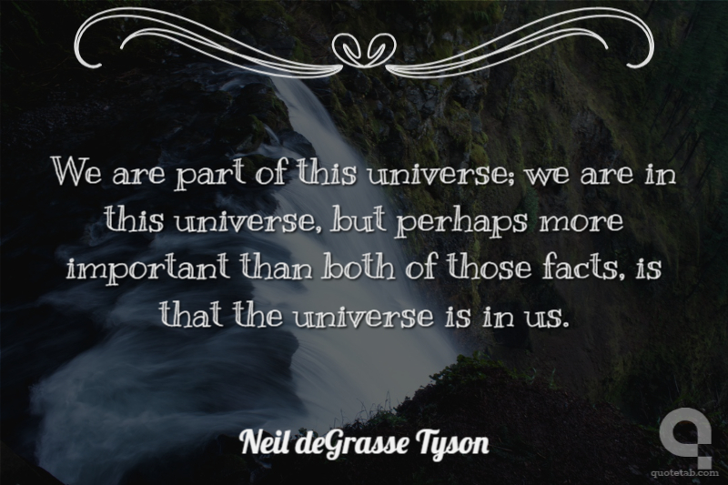 We are part of this universe; we are in this universe, but perhaps more important than both of those facts, is that the universe is in us.