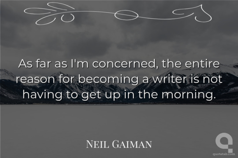 As far as I'm concerned, the entire reason for becoming a writer is not having to get up in the morning.