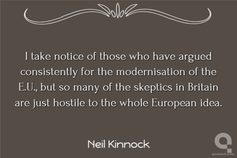 I take notice of those who have argued consistently for the modernisation of the E.U., but so many of the skeptics in Britain are just hostile to the whole European idea.