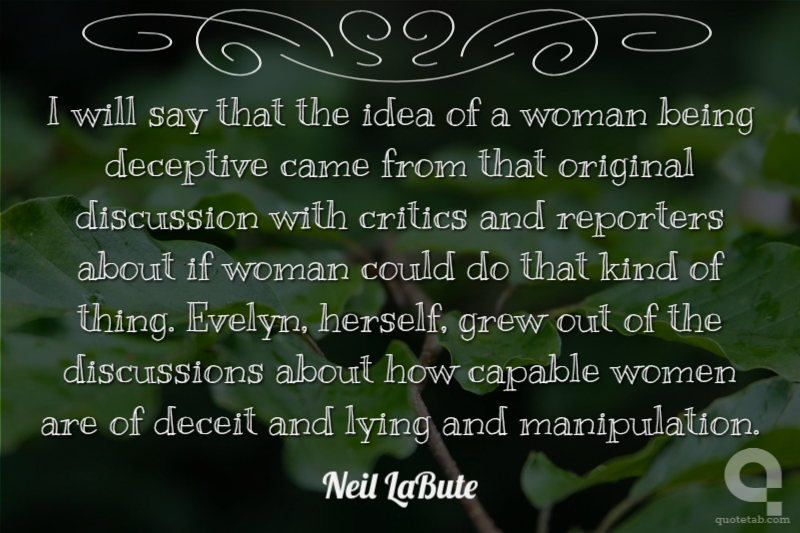 I will say that the idea of a woman being deceptive came from that original discussion with critics and reporters about if woman could do that kind of thing. Evelyn, herself, grew out of the discussions about how capable women are of deceit and lying and manipulation.