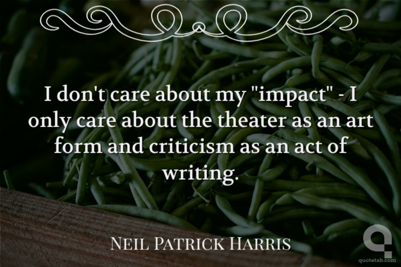 I don't care about my "impact" - I only care about the theater as an art form and criticism as an act of writing.