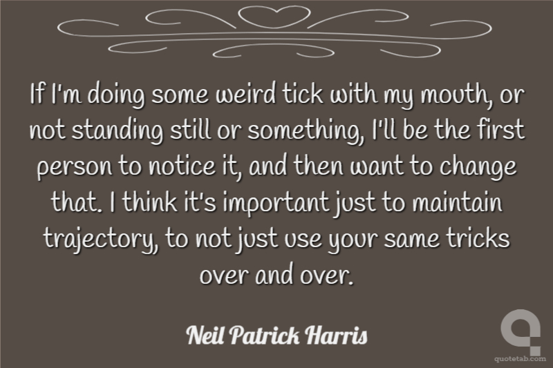 If I'm doing some weird tick with my mouth, or not standing still or something, I'll be the first person to notice it, and then want to change that. I think it's important just to maintain trajectory, to not just use your same tricks over and over.