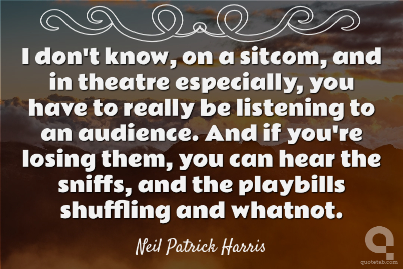 I don't know, on a sitcom, and in theatre especially, you have to really be listening to an audience. And if you're losing them, you can hear the sniffs, and the playbills shuffling and whatnot.