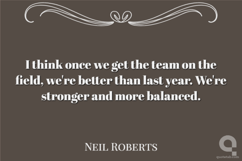 I think once we get the team on the field, we're better than last year. We're stronger and more balanced.