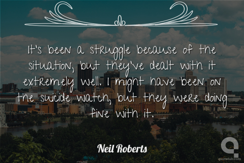 It's been a struggle because of the situation, but they've dealt with it extremely well. I might have been on the suicide watch, but they were doing fine with it.