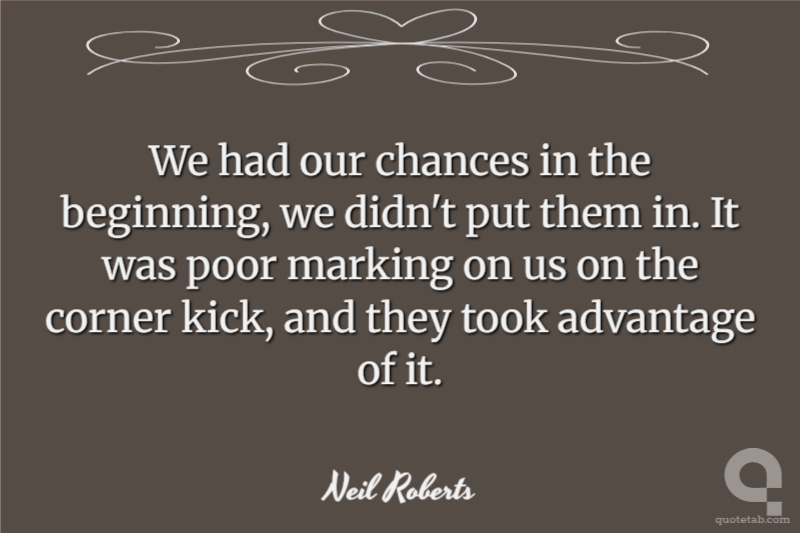 We had our chances in the beginning, we didn't put them in. It was poor marking on us on the corner kick, and they took advantage of it.