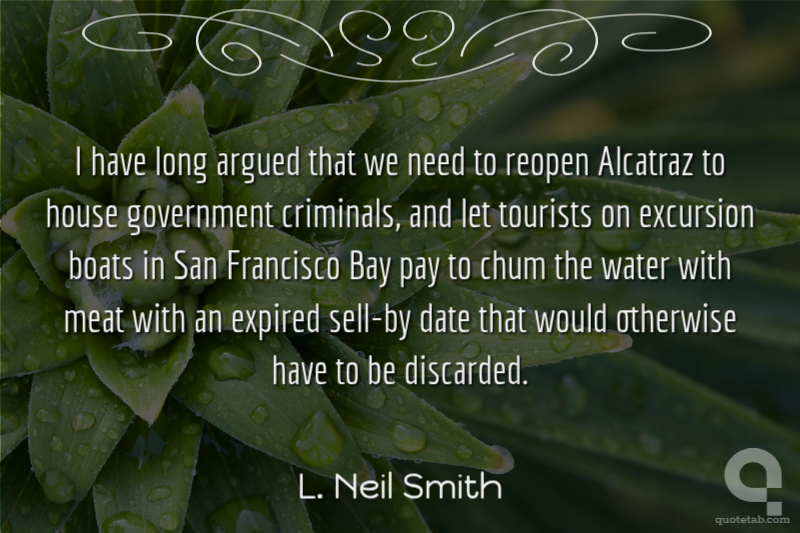I have long argued that we need to reopen Alcatraz to house government criminals, and let tourists on excursion boats in San Francisco Bay pay to chum the water with meat with an expired sell-by date that would otherwise have to be discarded.