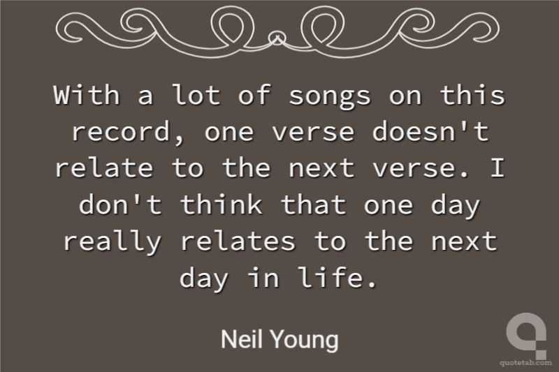 With a lot of songs on this record, one verse doesn't relate to the next verse. I don't think that one day really relates to the next day in life.