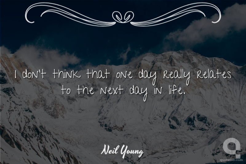 With a lot of songs on this record, one verse doesn't relate to the next verse. I don't think that one day really relates to the next day in life.