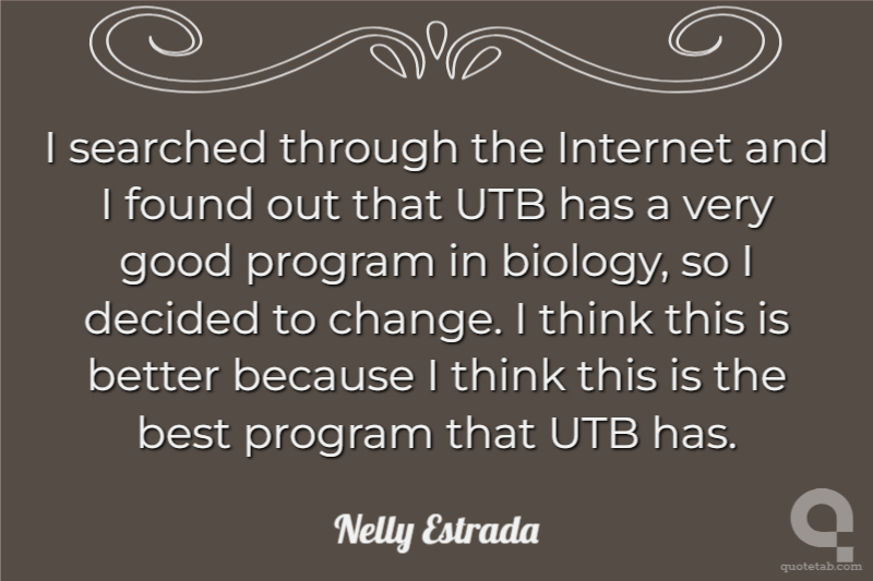 I searched through the Internet and I found out that UTB has a very good program in biology, so I decided to change. I think this is better because I think this is the best program that UTB has.