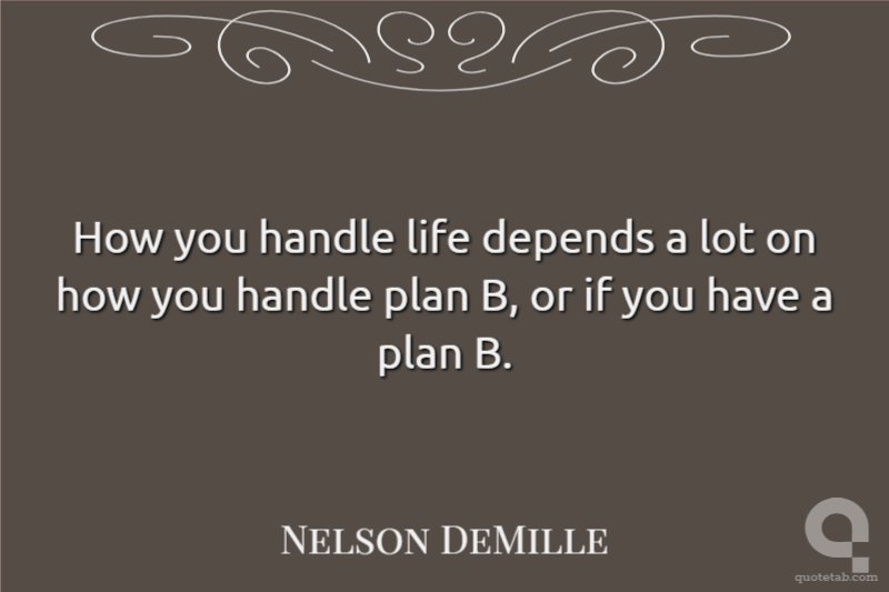 How you handle life depends a lot on how you handle plan B, or if you have a plan B.