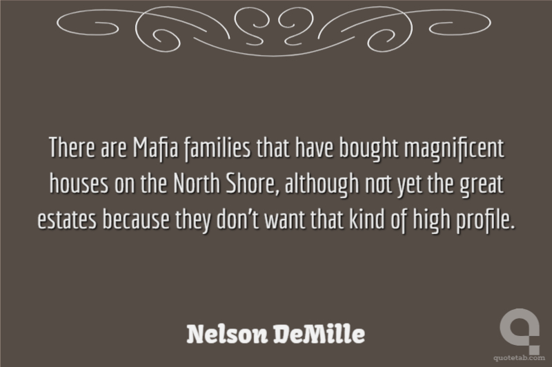 There are Mafia families that have bought magnificent houses on the North Shore, although not yet the great estates because they don't want that kind of high profile.