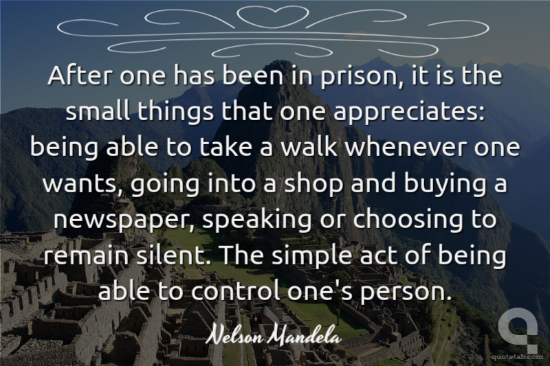 After one has been in prison, it is the small things that one appreciates: being able to take a walk whenever one wants, going into a shop and buying a newspaper, speaking or choosing to remain silent. The simple act of being able to control one's person.