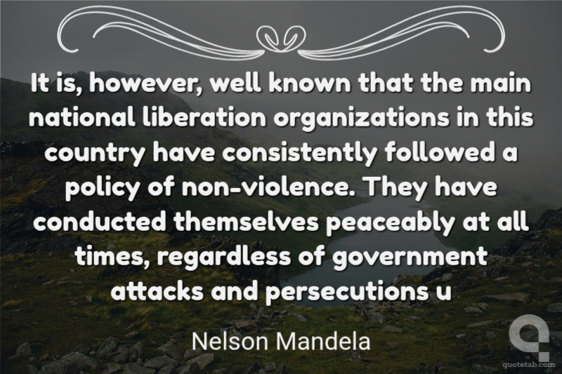 It is, however, well known that the main national liberation organizations in this country have consistently followed a policy of non-violence. They have conducted themselves peaceably at all times, regardless of government attacks and persecutions u