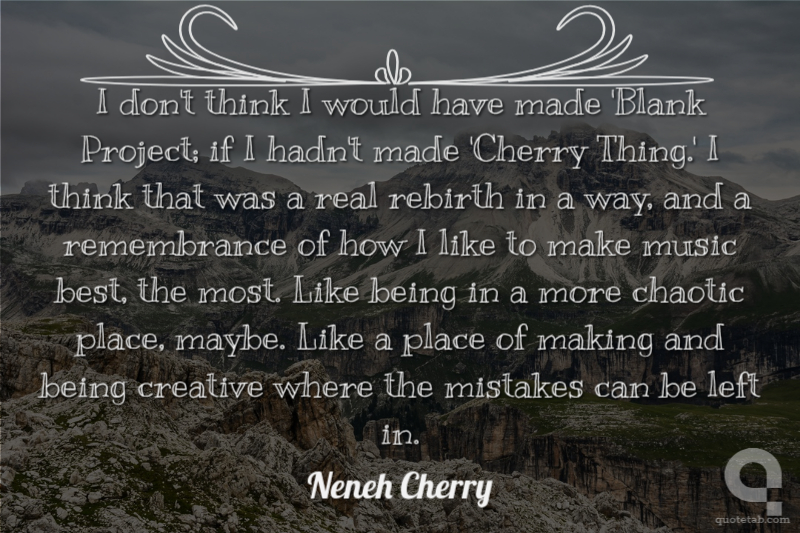 I don't think I would have made 'Blank Project; if I hadn't made 'Cherry Thing.' I think that was a real rebirth in a way, and a remembrance of how I like to make music best, the most. Like being in a more chaotic place, maybe. Like a place of making and being creative where the mistakes can be left in.