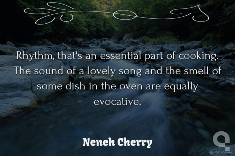 Rhythm, that's an essential part of cooking. The sound of a lovely song and the smell of some dish in the oven are equally evocative.