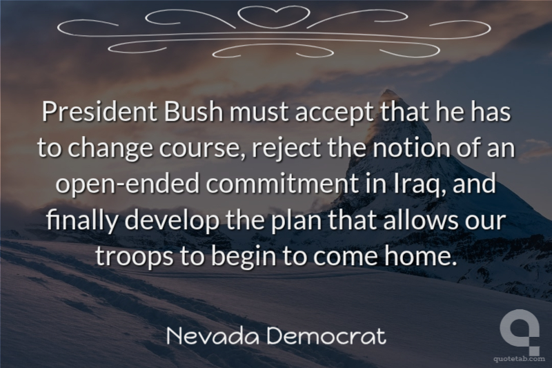 President Bush must accept that he has to change course, reject the notion of an open-ended commitment in Iraq, and finally develop the plan that allows our troops to begin to come home.