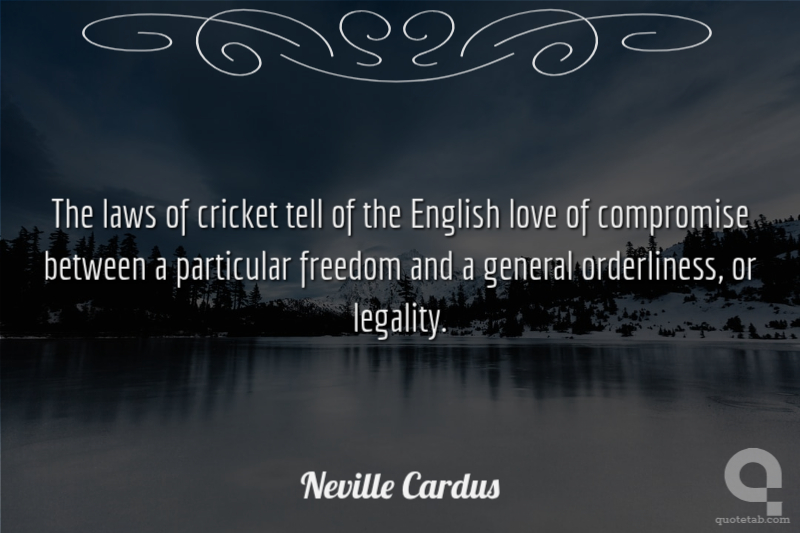 The laws of cricket tell of the English love of compromise between a particular freedom and a general orderliness, or legality.