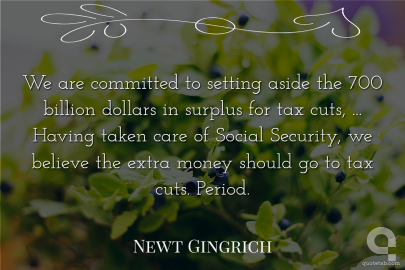 We are committed to setting aside the 700 billion dollars in surplus for tax cuts, ... Having taken care of Social Security, we believe the extra money should go to tax cuts. Period.