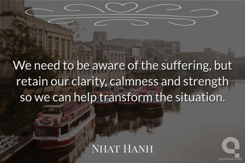 We need to be aware of the suffering, but retain our clarity, calmness and strength so we can help transform the situation.