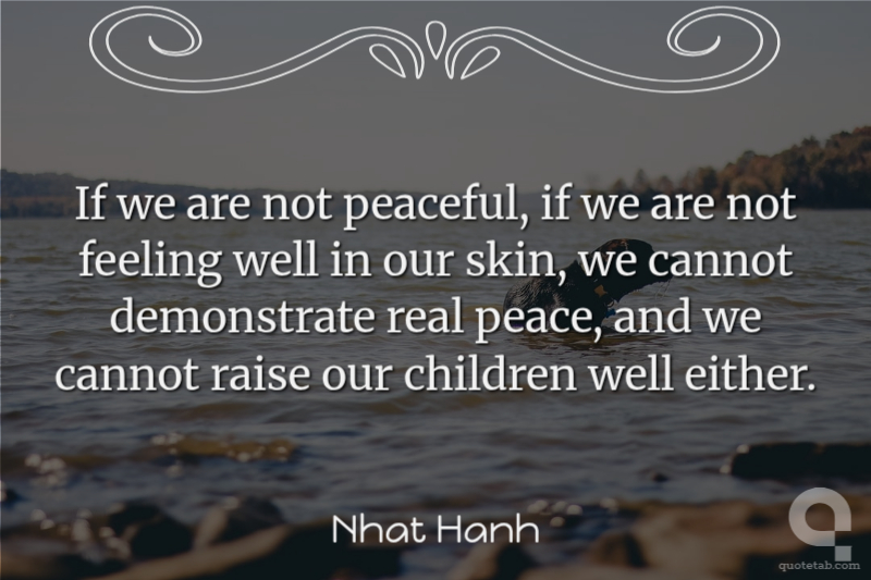 If we are not peaceful, if we are not feeling well in our skin, we cannot demonstrate real peace, and we cannot raise our children well either.