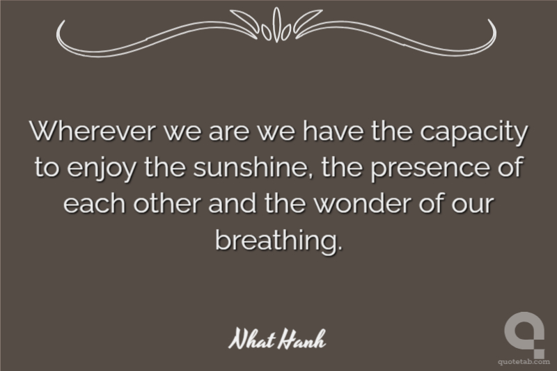 Wherever we are we have the capacity to enjoy the sunshine, the presence of each other and the wonder of our breathing.