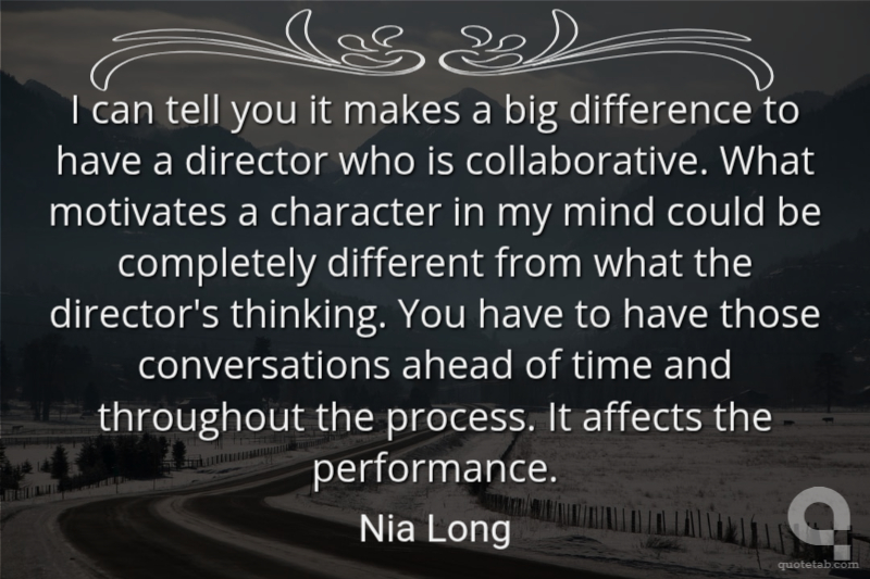 I can tell you it makes a big difference to have a director who is collaborative. What motivates a character in my mind could be completely different from what the director's thinking. You have to have those conversations ahead of time and throughout the process. It affects the performance.