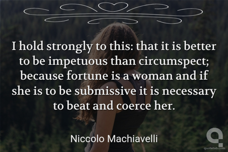 I hold strongly to this: that it is better to be impetuous than circumspect; because fortune is a woman and if she is to be submissive it is necessary to beat and coerce her.