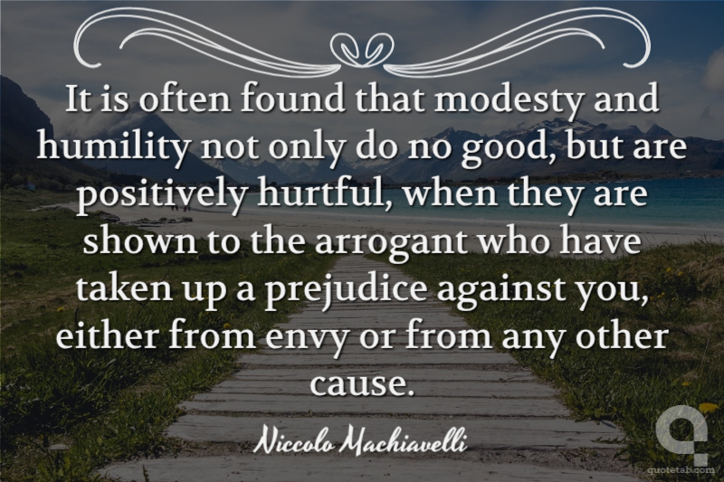 It is often found that modesty and humility not only do no good, but are positively hurtful, when they are shown to the arrogant who have taken up a prejudice against you, either from envy or from any other cause.