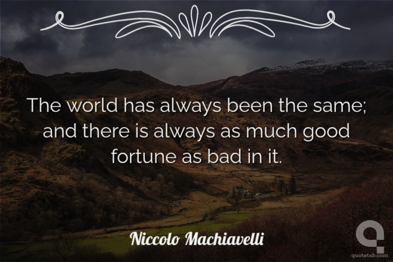 The world has always been the same; and there is always as much good fortune as bad in it.