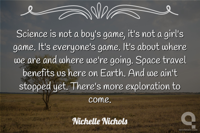 Science is not a boy's game, it's not a girl's game. It's everyone's game. It's about where we are and where we're going. Space travel benefits us here on Earth. And we ain't stopped yet. There's more exploration to come.