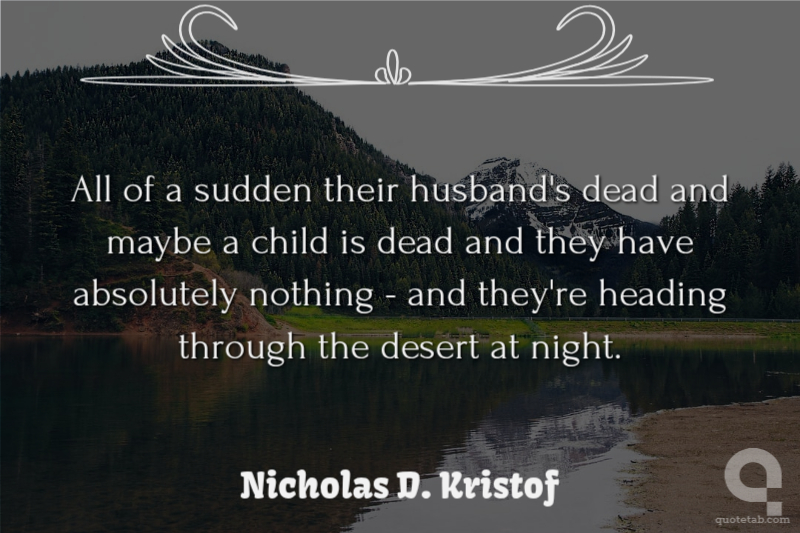 All of a sudden their husband's dead and maybe a child is dead and they have absolutely nothing - and they're heading through the desert at night.