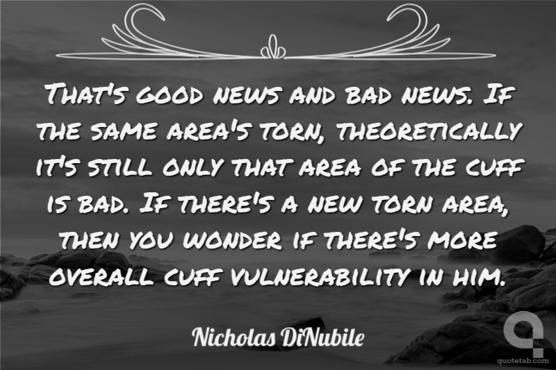 That's good news and bad news. If the same area's torn, theoretically it's still only that area of the cuff is bad. If there's a new torn area, then you wonder if there's more overall cuff vulnerability in him.