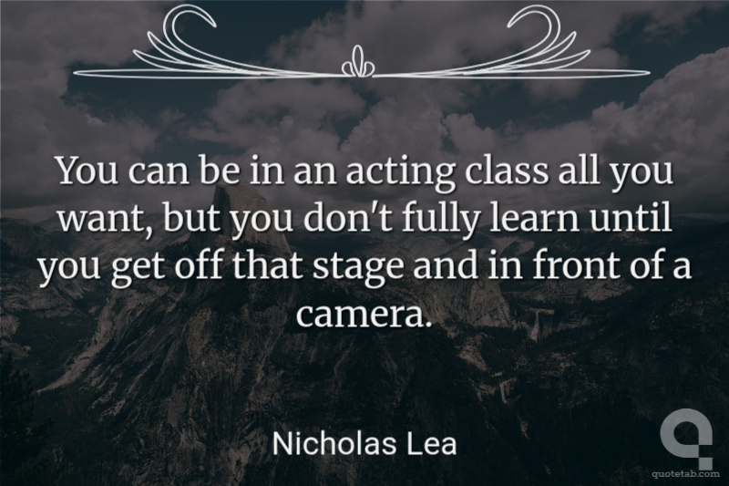 You can be in an acting class all you want, but you don't fully learn until you get off that stage and in front of a camera.