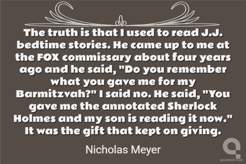 The truth is that I used to read J.J. bedtime stories. He came up to me at the FOX commissary about four years ago and he said, "Do you remember what you gave me for my Barmitzvah?" I said no. He said, "You gave me the annotated Sherlock Holmes and my son is reading it now." It was the gift that kept on giving.