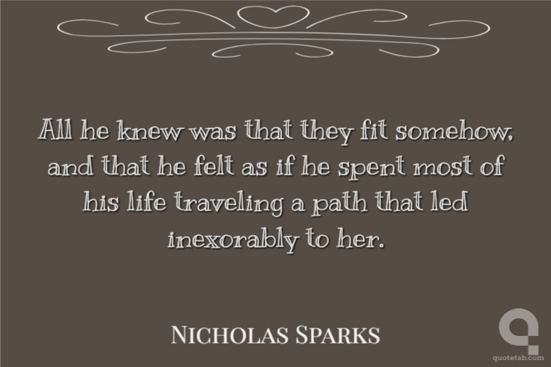 All he knew was that they fit somehow, and that he felt as if he spent most of his life traveling a path that led inexorably to her.