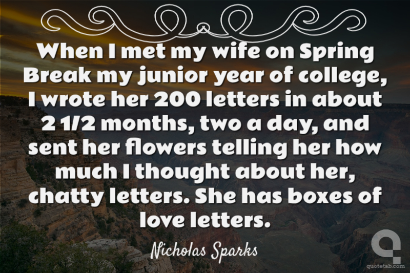 When I met my wife on Spring Break my junior year of college, I wrote her 200 letters in about 2 1/2 months, two a day, and sent her flowers telling her how much I thought about her, chatty letters. She has boxes of love letters.
