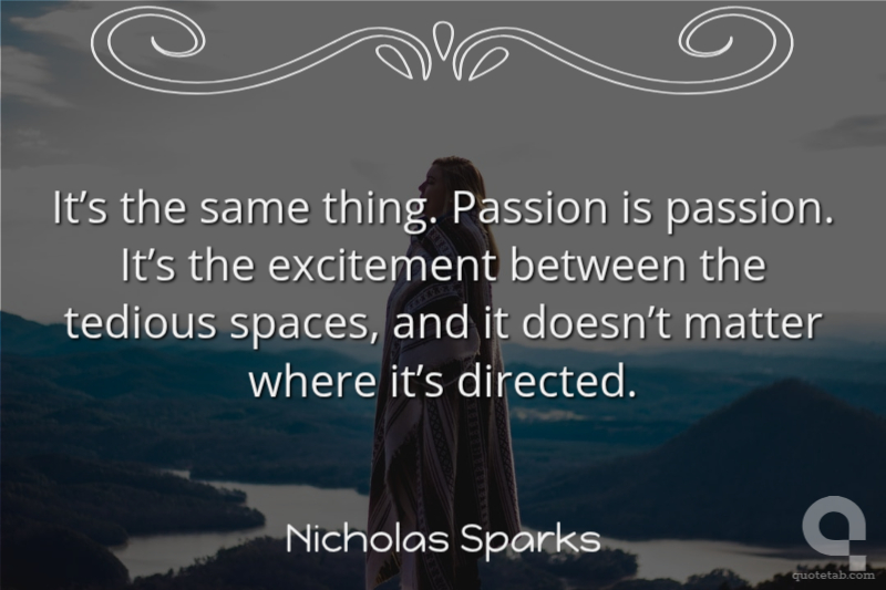 It’s the same thing. Passion is passion. It’s the excitement between the tedious spaces, and it doesn’t matter where it’s directed.