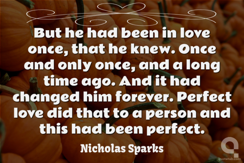 But he had been in love once, that he knew. Once and only once, and a long time ago. And it had changed him forever. Perfect love did that to a person and this had been perfect.