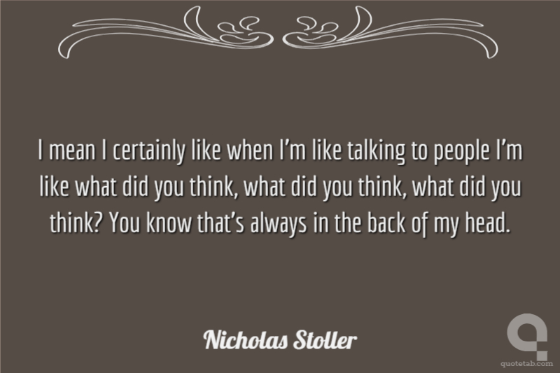 I mean I certainly like when I'm like talking to people I'm like what did you think, what did you think, what did you think? You know that's always in the back of my head.
