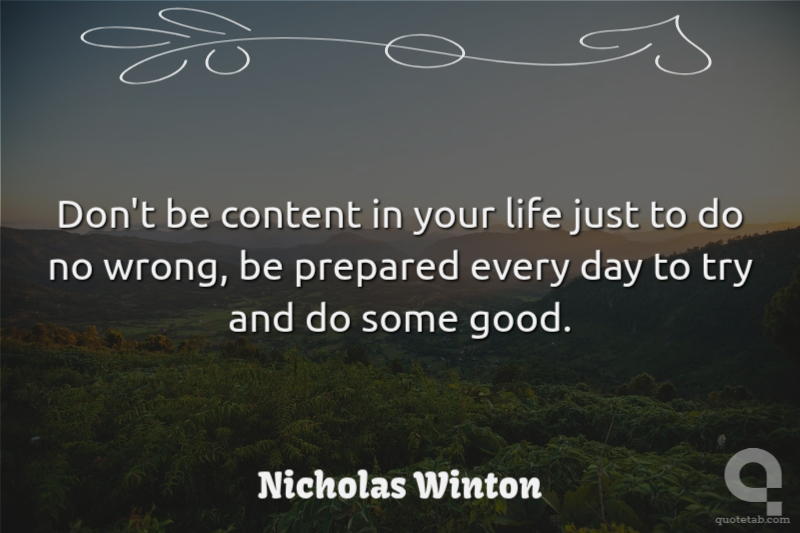 Don't be content in your life just to do no wrong, be prepared every day to try and do some good.