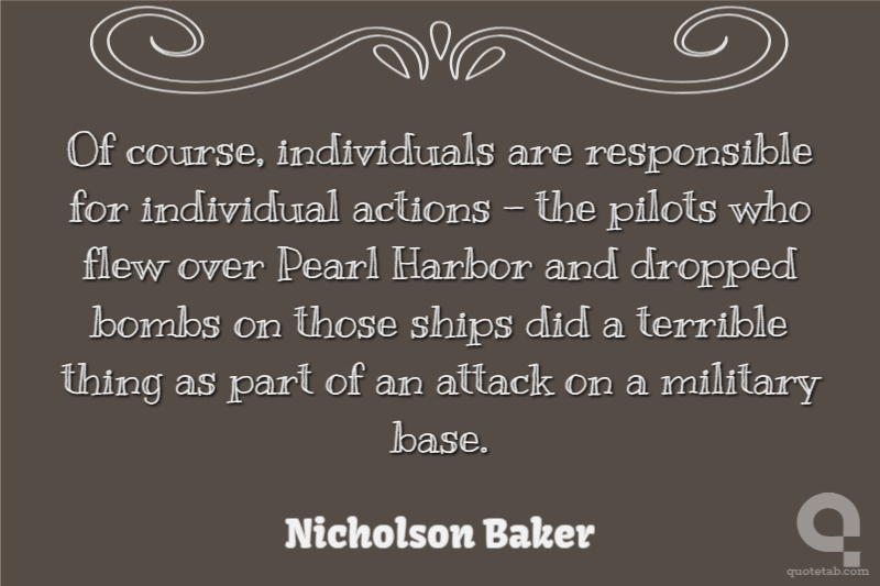 Of course, individuals are responsible for individual actions - the pilots who flew over Pearl Harbor and dropped bombs on those ships did a terrible thing as part of an attack on a military base.